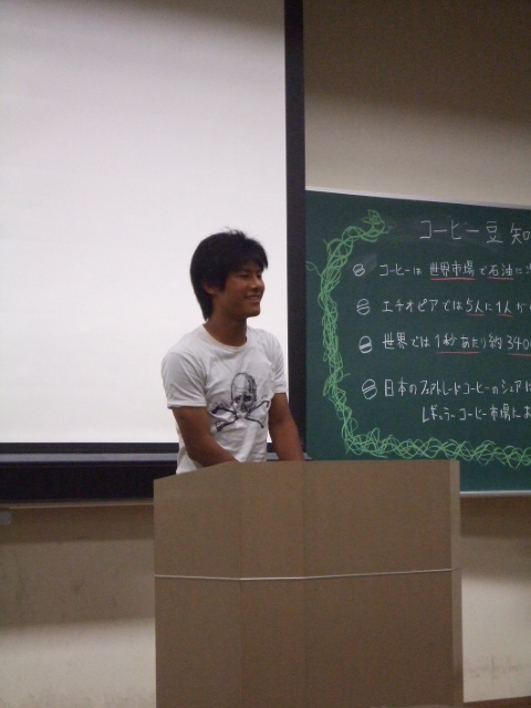 7月8日、大阪大学豊中キャンパスにて映画『おいしいコーヒーの真実』無料上映会を開催しました。開始が午後6時30分と遅めだったにも関わらず、おかげさまで20人近くの方に来ていただくことができました。ありがとうございました!アンケートを書いてもらったところ、来てくれた方はフェアトレードをご存じのようで・・正直なところ、こんなにフェアトレードを知ってる人がいるとは思っていませんでした。でも、PROMEの今回の企画の目的は、フェアトレードをまったく知らないみんなにフェアトレードを知ってもらうこと。今回、その目標は達成できなかったんじゃないかな、と反省しました。もっと多くのフェアトレードを知らない人にフェアトレードを知ってもらうために、フェアトレードを知っている人にフェアトレードをもっと知ってもらうために、われわれPROMEはがんばります!